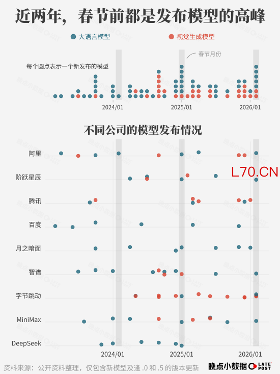 直到 2025 年春节,大公司被 DeepSeek 冲击得措手不及。于是刚刚过去的春节成了 AI 公司的必争之地。大模型公司赶在春节前发布模型,想复制 DeepSeek 去年的爆发。大厂把能用的手段全部堆上去:发新版模型、高频更新应用、抢春晚广告位、送红包补贴。