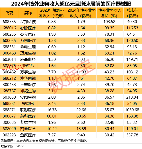 医疗器械行业迎来利好 境外业务收入高增长名单出炉