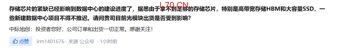 中际旭创:公司订单和出货一切正常