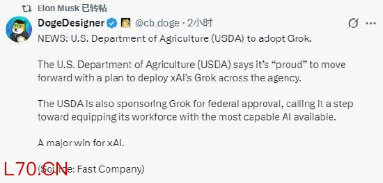 美国农业部将开始采用马斯克的Grok人工智能系统