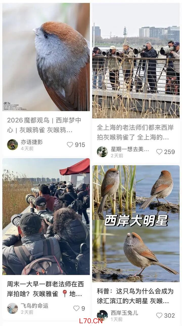 灰喉鸦雀现身徐汇滨江,吸引了大量摄影爱好者和观鸟爱好者前往蹲守