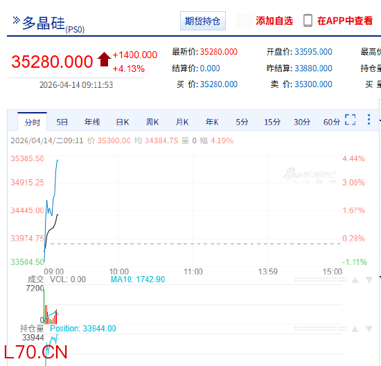 快讯:多晶硅主力合约日内涨超4.00%,现报35255元/吨,此前一度跌近1%